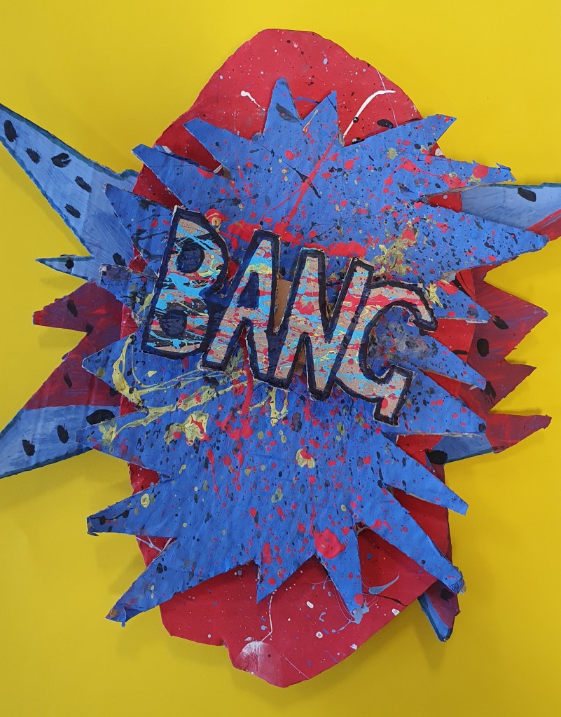 The 3D Pop Art project was designed to be a fun way to introduce students to some of the basic elements of Pop Art; bright, flat colours, use of line and outline to create comic styles, pattern and the importance of language and text, specifically onomatopoeias. I wanted students to develop their understanding of colour theory too, so added some challenges for colour mixing and use of colour schemes.