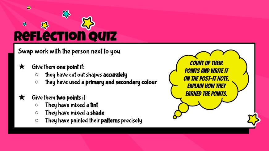 I have shared a presentation with a range of fun assessment activities for art here – enjoy!
