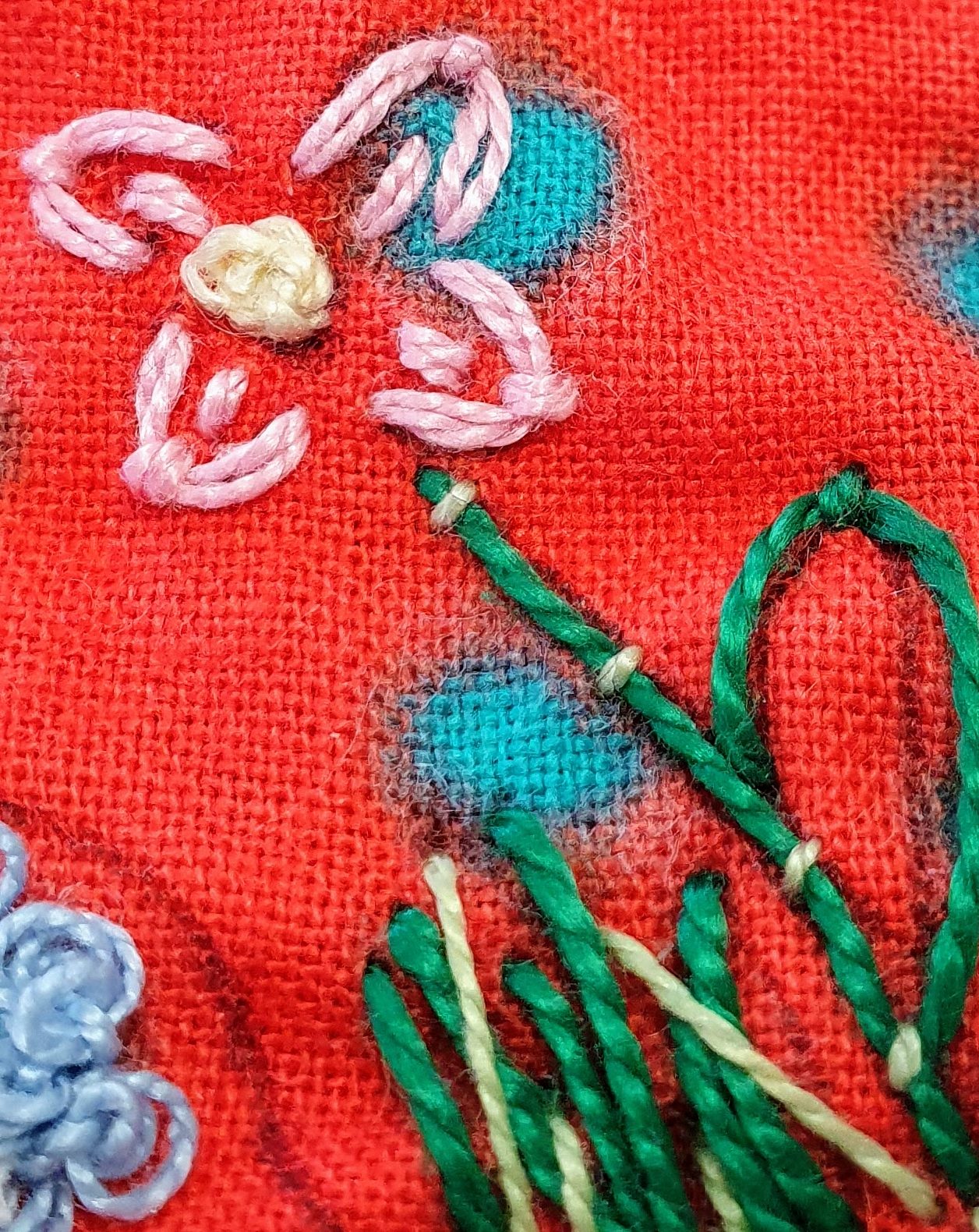 I kept these initial lessons really simple as students got used to threading their needles, knotting and using the threads… I assigned a couple of ‘experts’ per class who could help others and look after equipment.