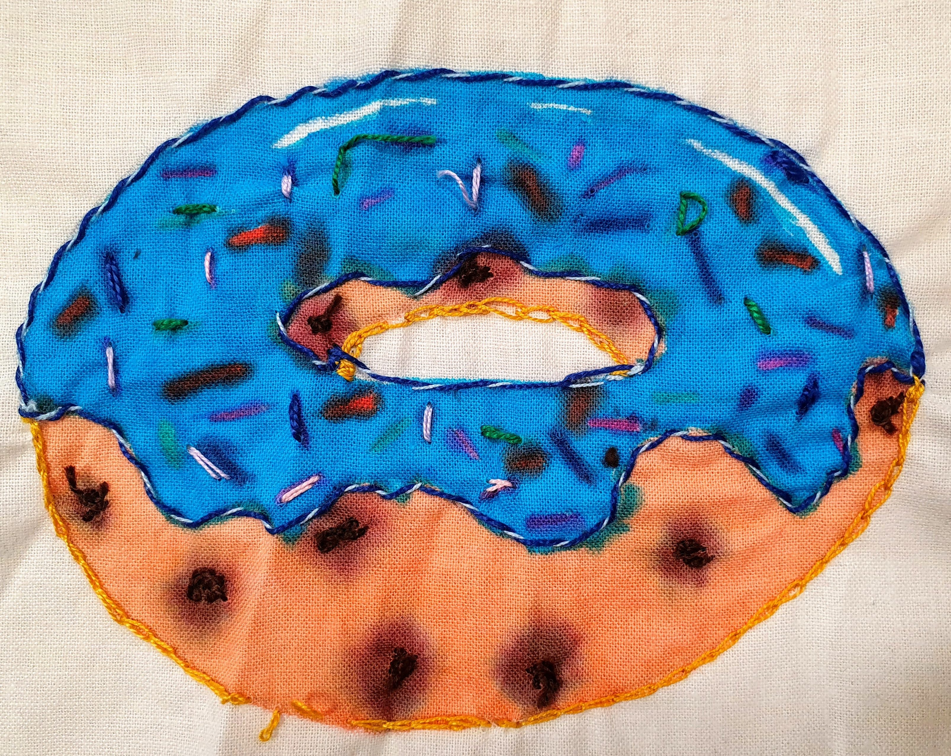 I teach this art / textiles project as a ‘Mini GCSE Taster Project’ in Year 9, aiming to introduce students to a range of basic stitches and hand-stitching techniques. As it is a taster project, it’s only short so it could easily be extended for a GCSE project. The theme of the textiles work is FOOD, and students really enjoy being able to choose sweet snacks as their subject… The donuts were particularly popular ๐ฉ ๐จ