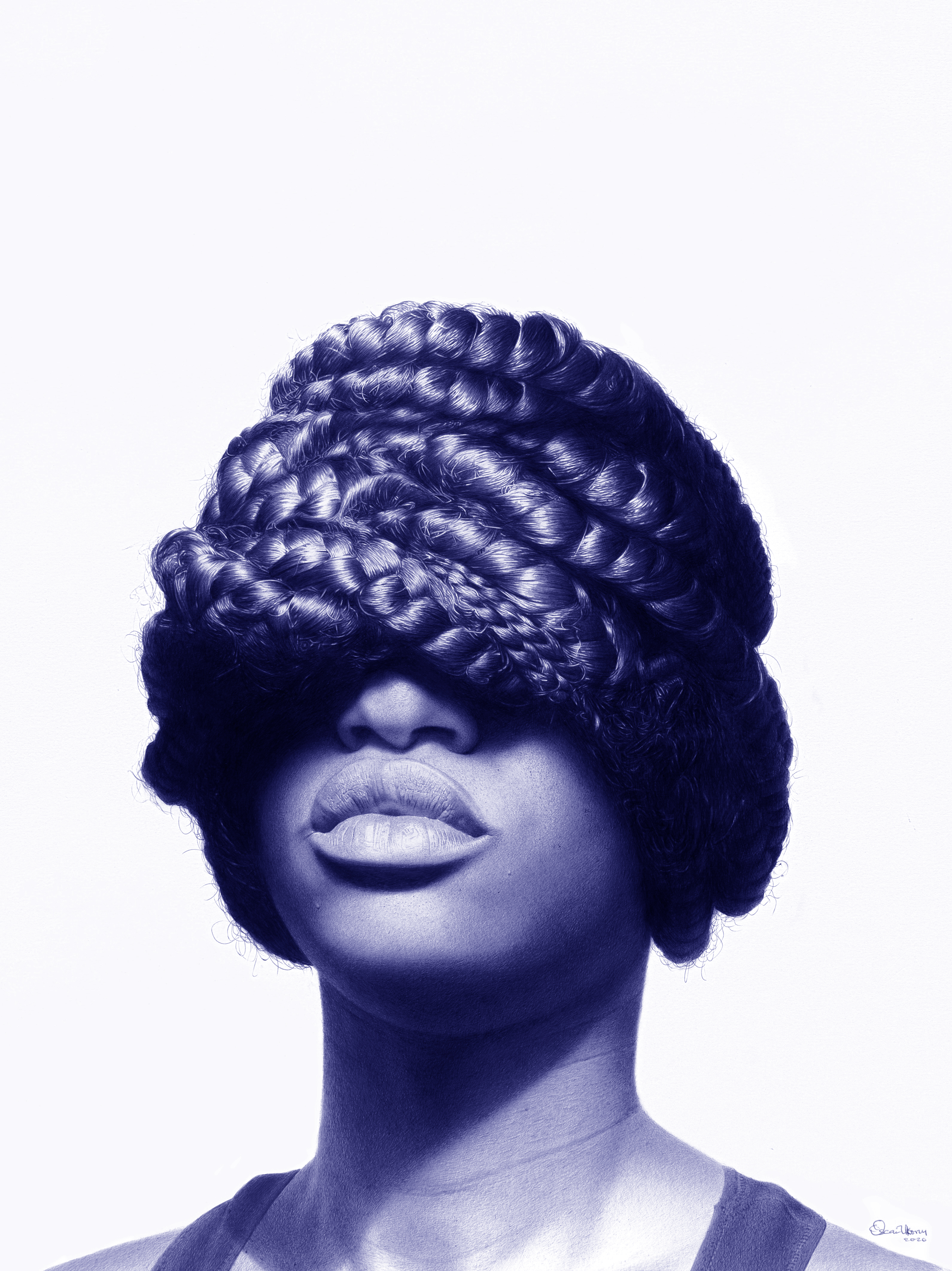 Oscar Ukonu, born in 1993 is a Nigerian ballpoint pen artist based in Lagos, Nigeria. He draws large-scale hyperreal style portraits using only biro pens. His style has been described as both hyperrealism and Afrorealism – he uses his drawings to convey a social message about the African descent. His portraits are strikingly realistic, capturing every nuance of his subjects’ faces and expressions – a celebration of the beauty and diversity of humanity.