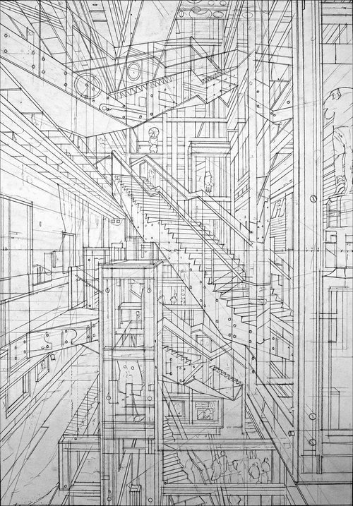 To create his oil paintings, Walsh creates highly detailed pencil drawings, using the reference pictures he takes whilst travelling to different cities. He can use up to 1000 reference pictures for his paintings!