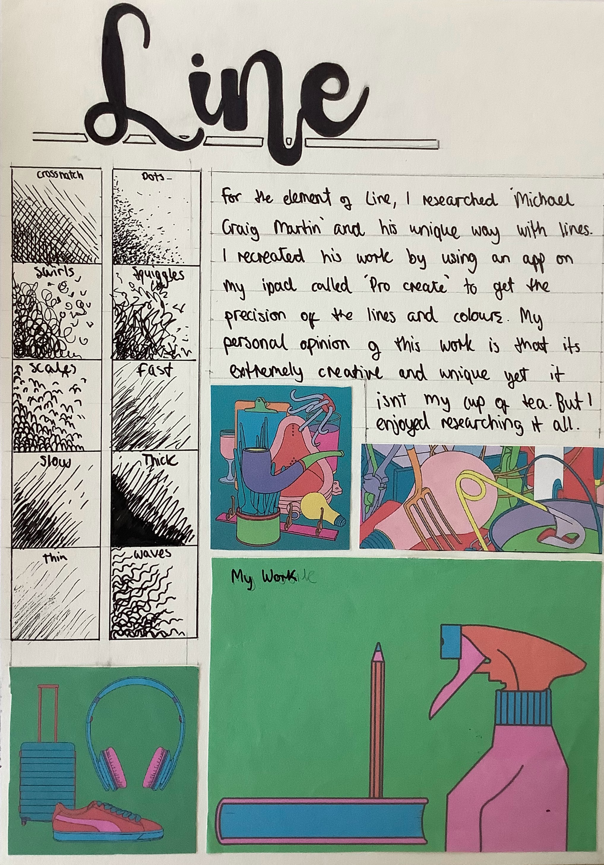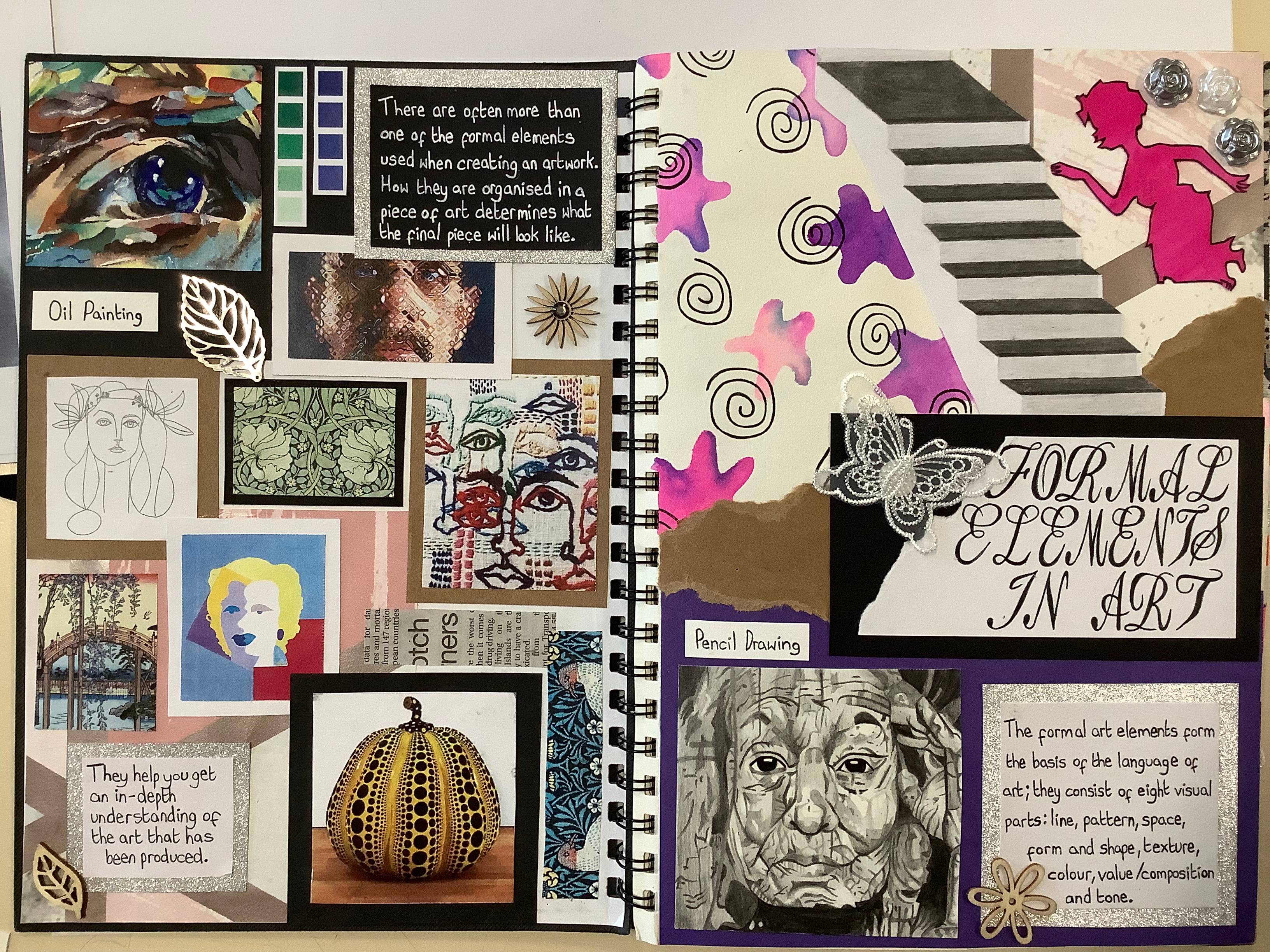 I created this Formal Elements booklet with the idea of having students create their own independent research project. I set it as a Christmas homework so they had 2 weeks to complete it.