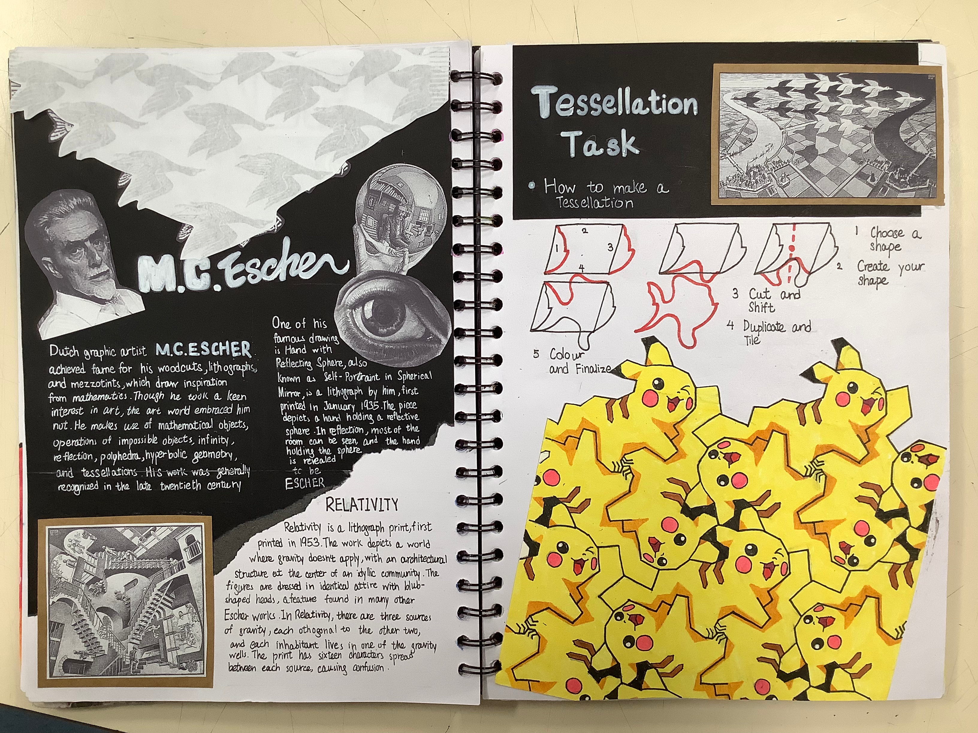 I gave students the booklet and asked them to be creative in how they did their research – I was so impressed with what they produced, some created sketchbooks, design sheets and one even made a video diary!